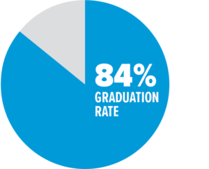 At a record high, 84 percent of public high school students reach graduation, as measured by the adjusted cohort graduation rate (ACGR), according to the National Center for Education Statistics.